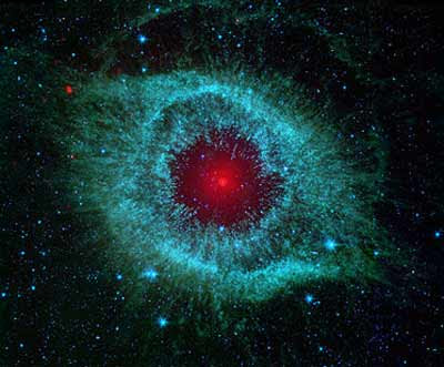 Se trata de la Nebulosa Hélix en la constelación de Acuario, el polvo de la nebulosa es causado por la colisión de cometas en los límites externos del sistema.